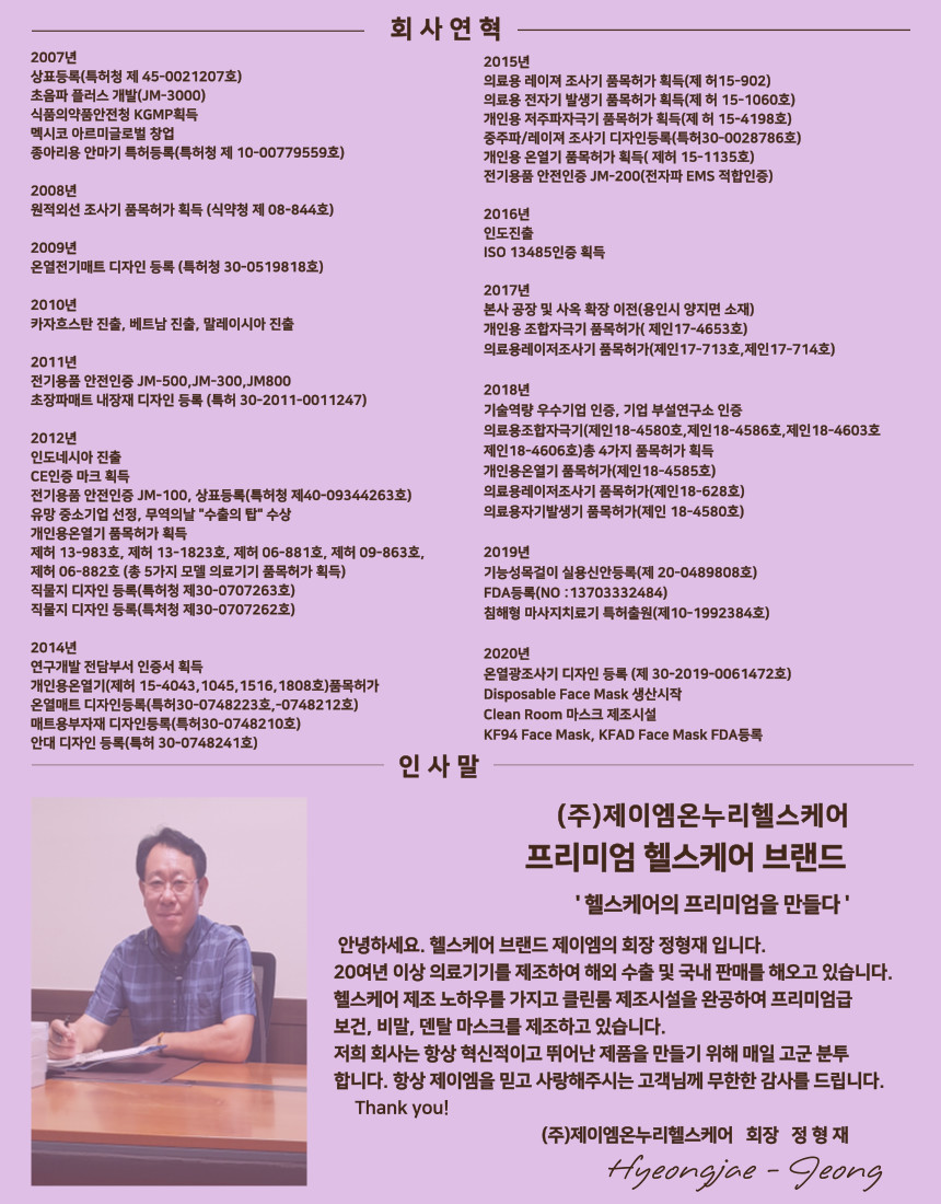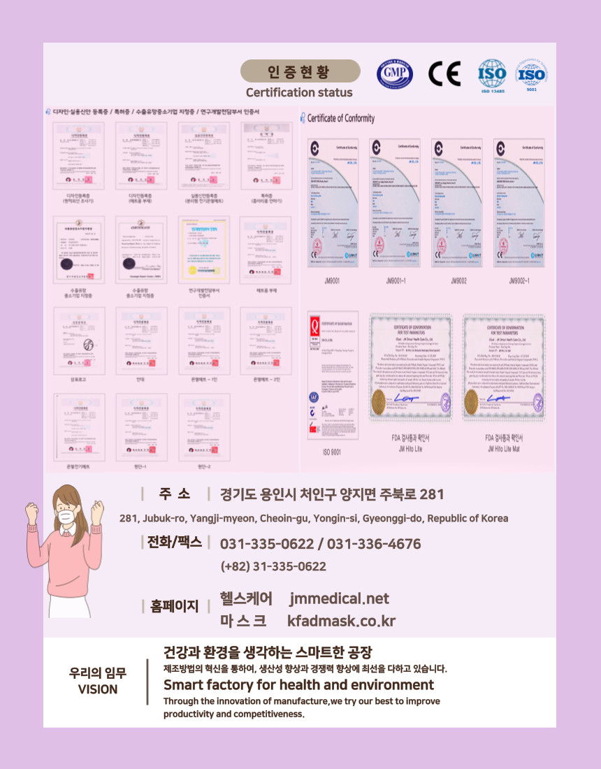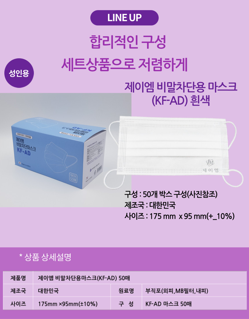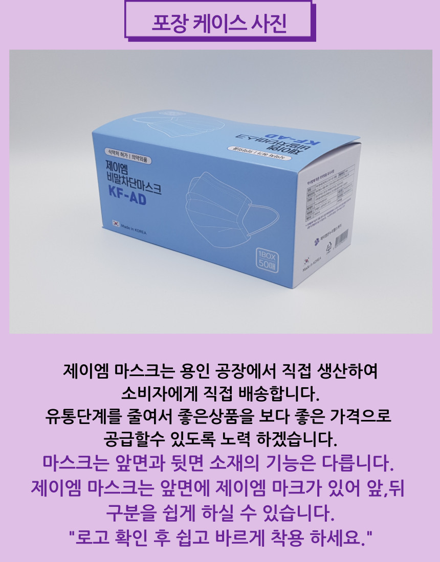 제이엠 온누리 헬스케어 JM KF-AD 비말차단 마스크 의약외품 FDA등록 국내생산 마스크 50매